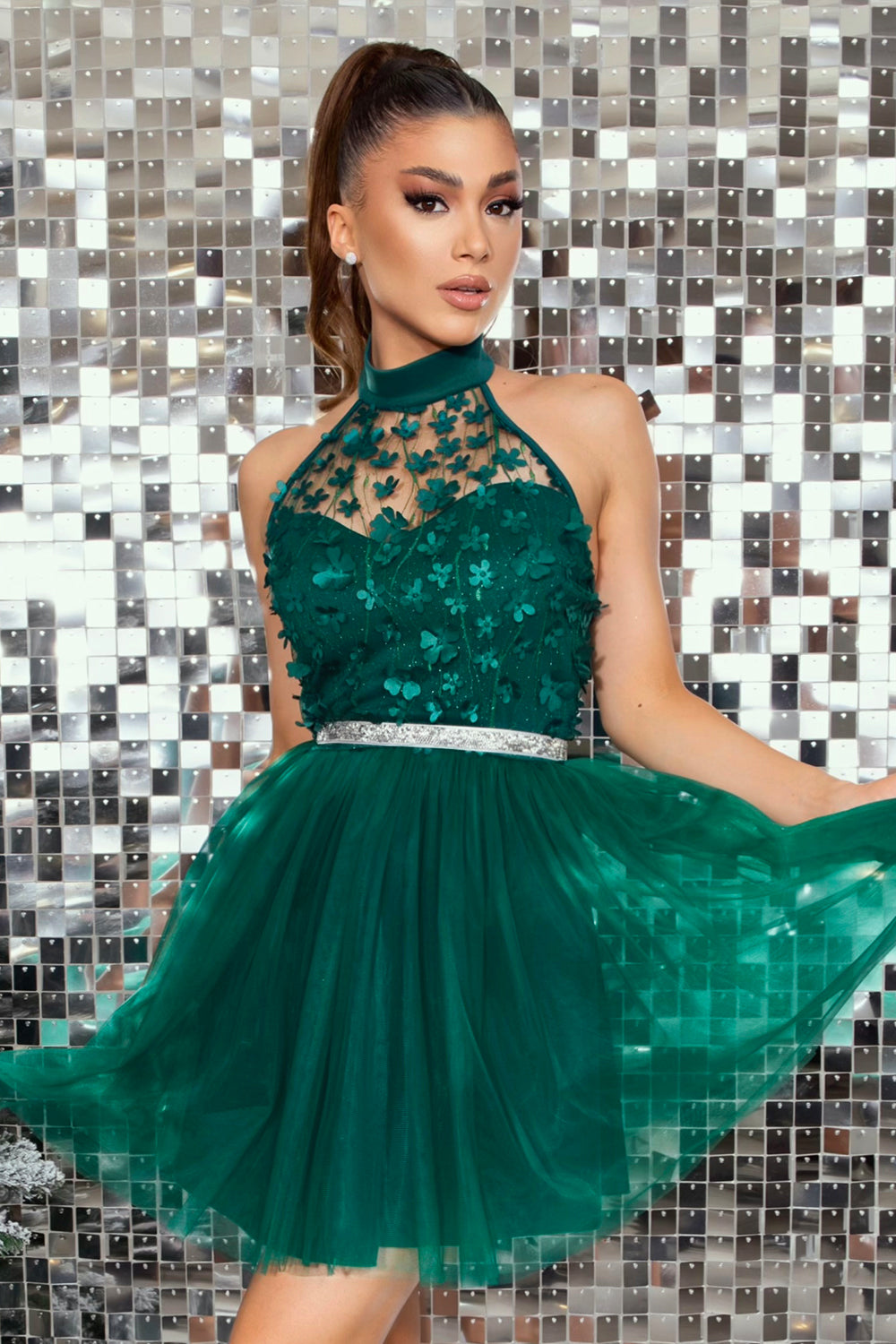 МИНИ РОКЛЯ NOVA ДАНТЕЛА ТЮЛ ТЪМНОЗЕЛЕН