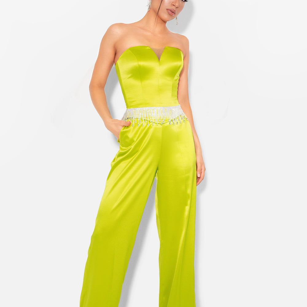 ДЪЛЪГ СЕТ 2 ЧАСТИ ТОП С ПАНТАЛОН LUCIANA САТЕН ЖЪЛТ
