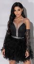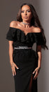 BELT MARABU 5B FEATHERS RHINESTONE BLACK