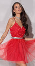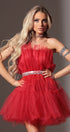 BELT MARABU 6A FEATHERS RHINESTONE RED