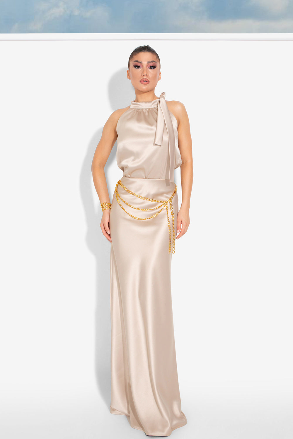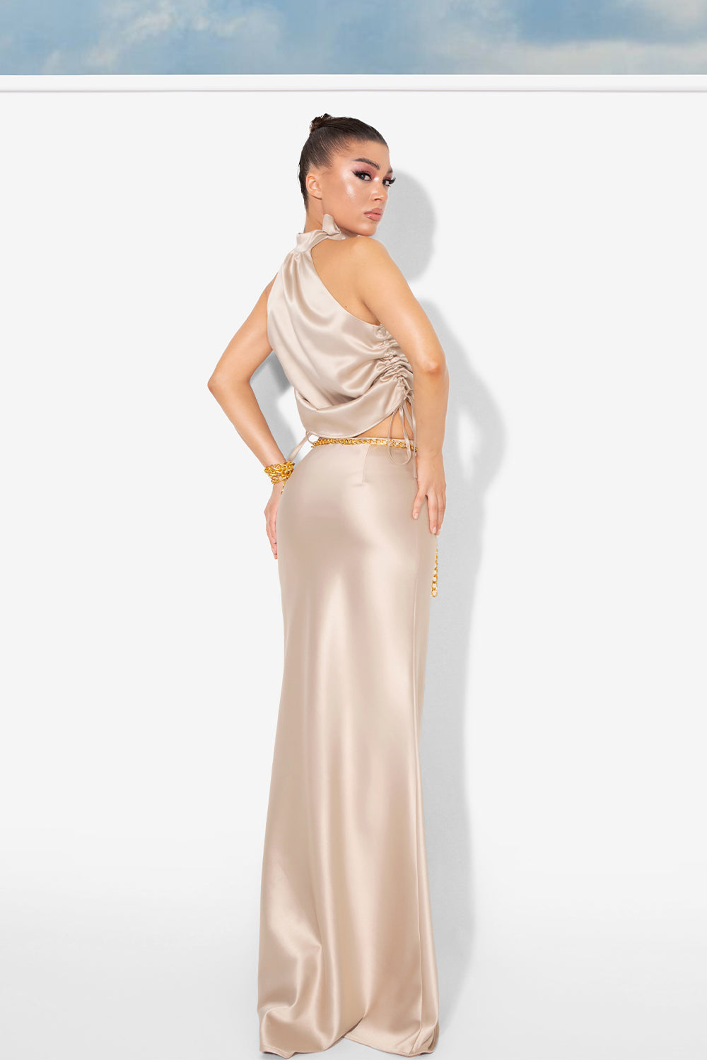 MAXI SKIRT AND CROP TOP SET 2 PARTS FLORENCE SATIN GOLDEN
