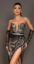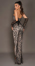 MAXI SKIRT AND CROP TOP SET AMAYAH GLITTER LACE BLACK AND NUDE