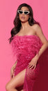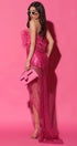 MAXI SKIRT AND CROP TOP SET ANAIS FEATHERS SEQUIN HOT PINK