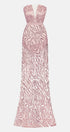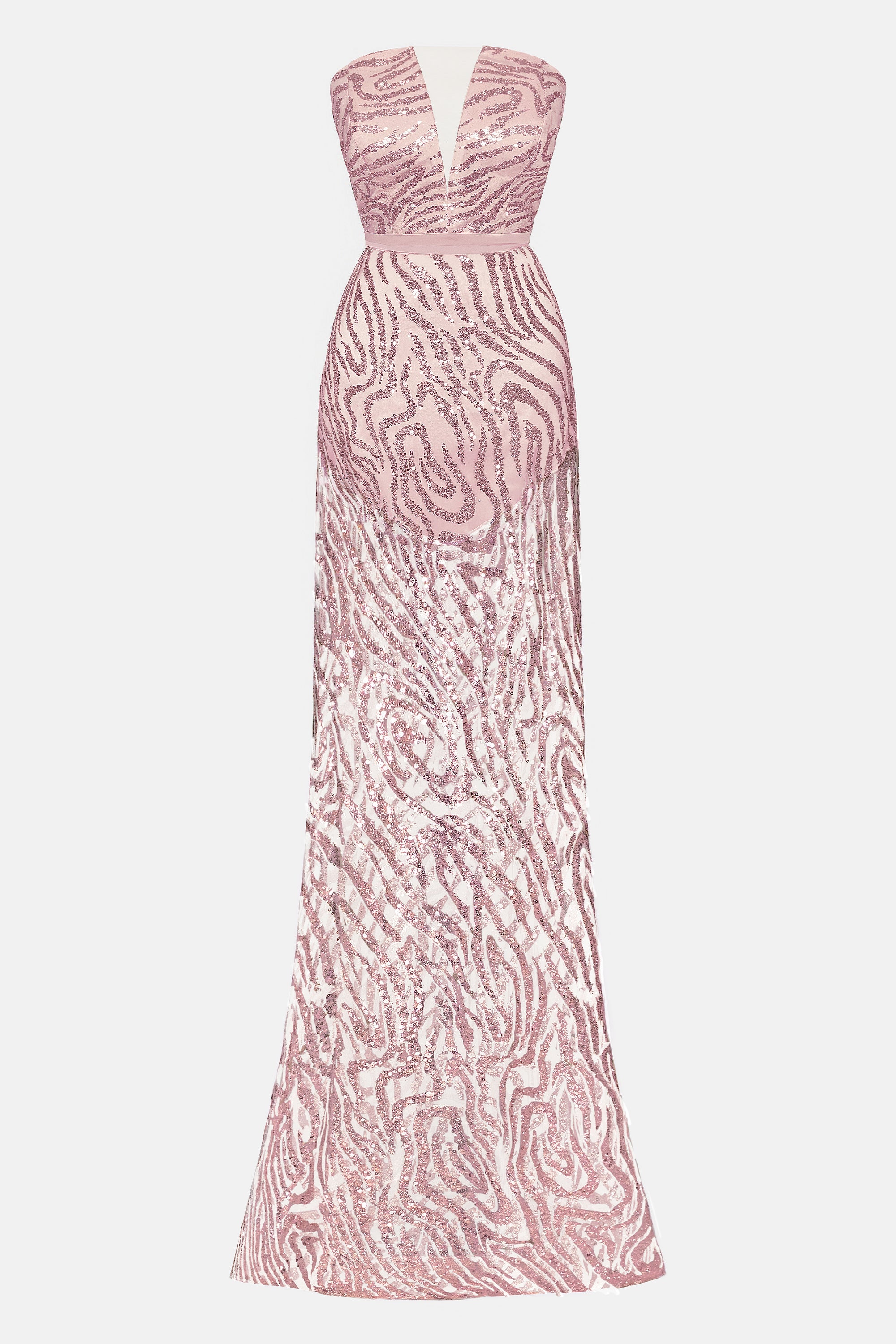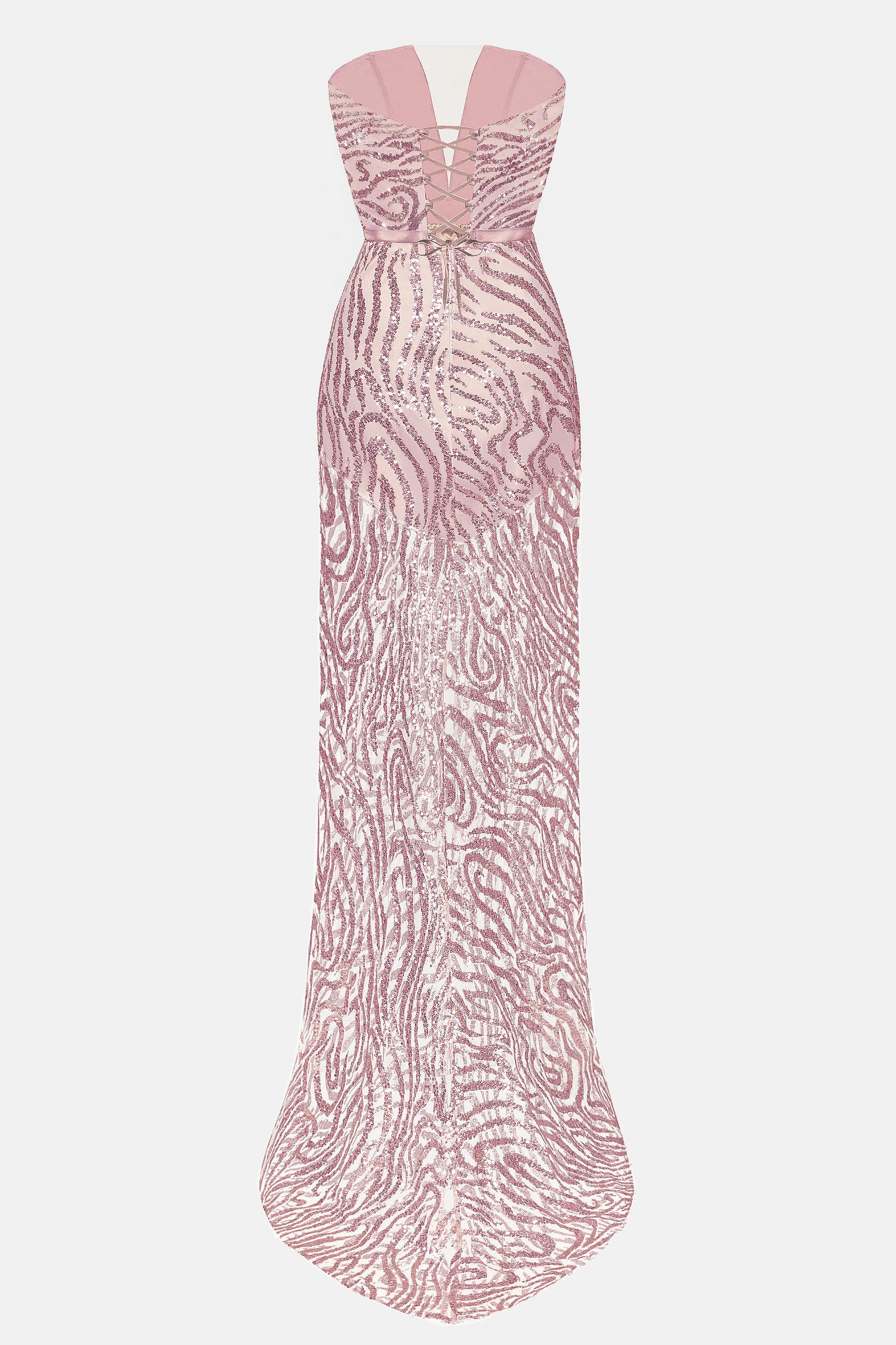 MAXI SKIRT AND CROP TOP SET AURELIA GLITTER LACE POWDER PINK