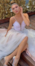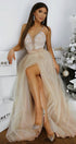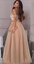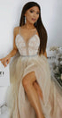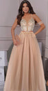 MAXI SKIRT AND CROP TOP SET CANDICE LACE GLITTER TULLE BEIGE / NUDE