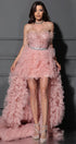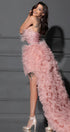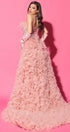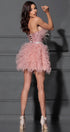 MAXI SKIRT AND CROP TOP SET CAROLINA GLITTER LACE FEATHERS TULLE POWDER PINK