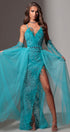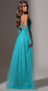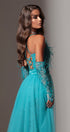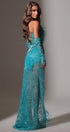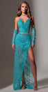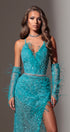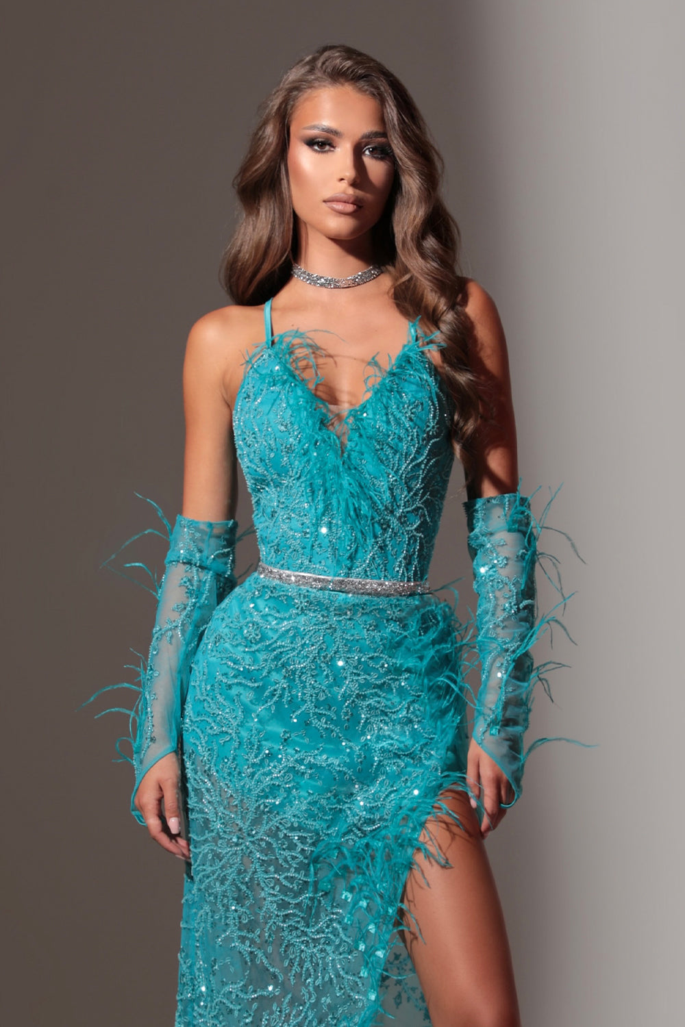 MAXI SKIRT AND CROP TOP SET CELESTE GLITTER LACE FEATHERS AZURE BLUE
