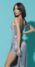 MAXI SKIRT AND CROP TOP SET DAKOTA SATIN GLITTER LACE SILVER AND NUDE