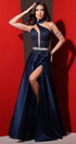 MAXI SKIRT AND CROP TOP SET EBRILL GLITTER LACE SATIN DARK BLUE