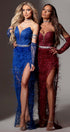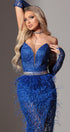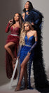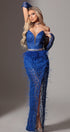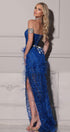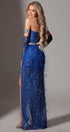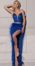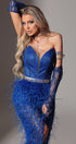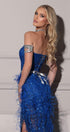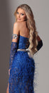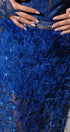 MAXI SKIRT AND CROP TOP SET EDEN GLITTER LACE FEATHERS COBALT BLUE