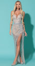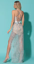 MAXI SKIRT AND CROP TOP SET ELLA GLITTER LACE SILVER AND NUDE