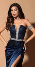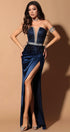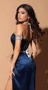 MAXI SKIRT AND CROP TOP SET ELLEN GLITTER LACE RHINESTONE SATIN DARK BLUE
