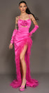 MAXI SKIRT AND CROP TOP SET ELLIS SATIN FEATHERS HOT PINK