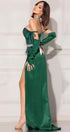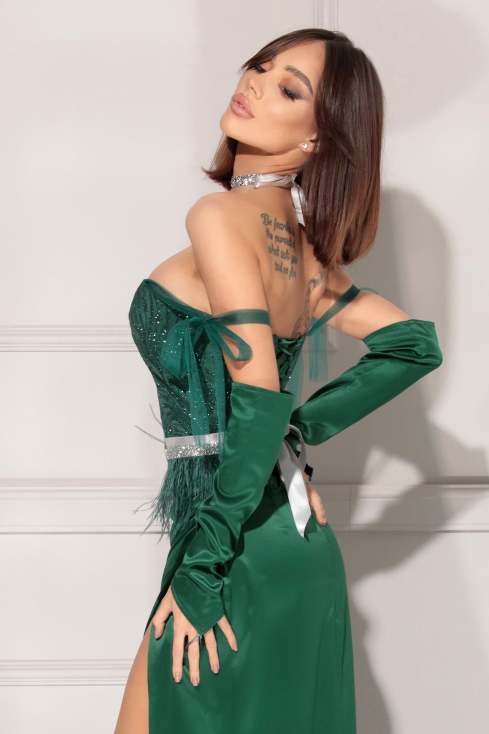 MAXI SKIRT AND CROP TOP SET EVERLY SATIN GLITTER LACE DARK GREEN