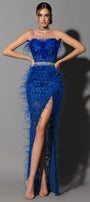 MAXI SKIRT AND CROP TOP SET FEATHER PRINCESS FEATHERS GLITTER LACE COBALT BLUE
