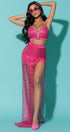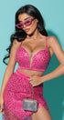MAXI SKIRT AND CROP TOP SET JOSIЕ SEQUIN HOT PINK
