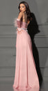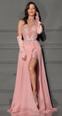 MAXI SKIRT AND CROP TOP SET JUDITH GLITTER LACE FEATHERS CHIFFON SATIN POWDER PINK