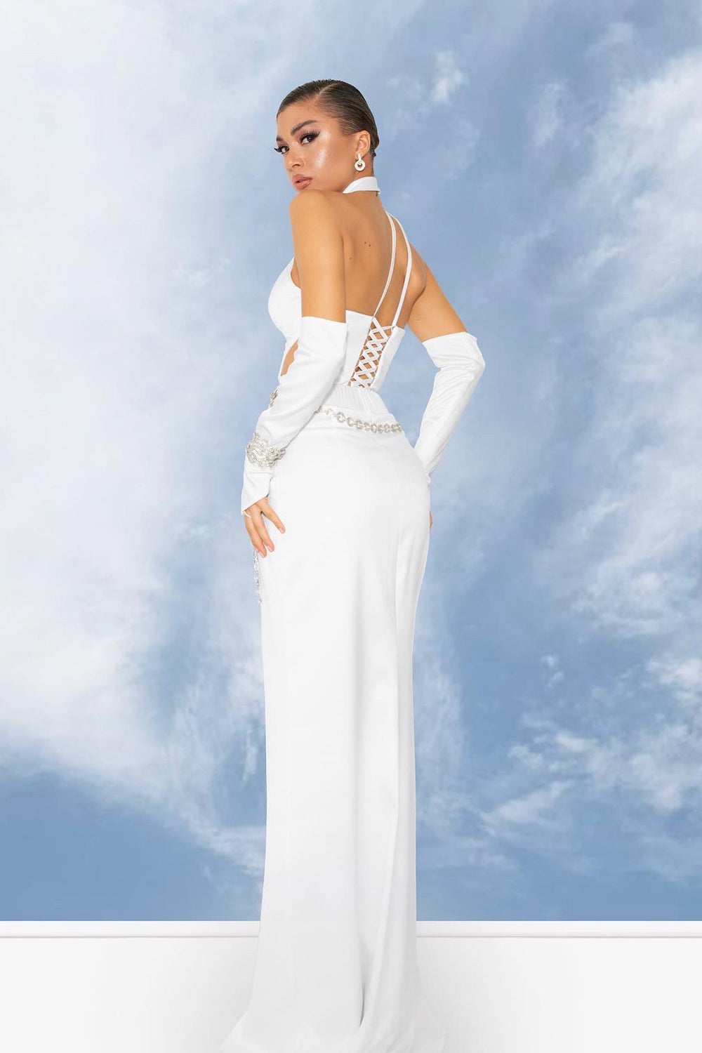 MAXI SKIRT AND CROP TOP SET KATELYN 3 PARTS SATIN WHITE
