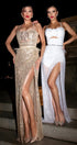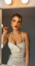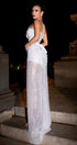 MAXI SKIRT AND CROP TOP SET LA VIE EN ROSE SEQUIN SATIN WHITE