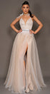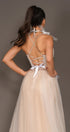 MAXI SKIRT AND CROP TOP SET LILIA GLITTER LACE TULLE WHITE AND NUDE