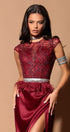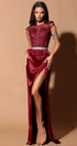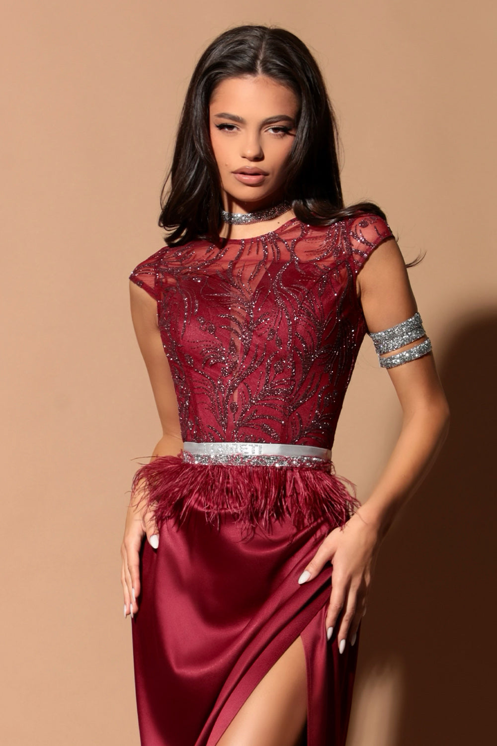 MAXI SKIRT AND CROP TOP SET MARIA GLITTER LACE SATIN BURGUNDY