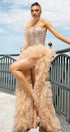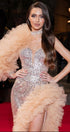 Please do not put the dress in a washing machine with a spin cycle or in a dryer, and avoid treating it roughly to preserve its luxurious silhouette and quality.