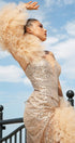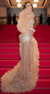 MAXI SKIRT AND CROP TOP SET NIYA 3 PARTS SEQUIN TULLE GOLDEN