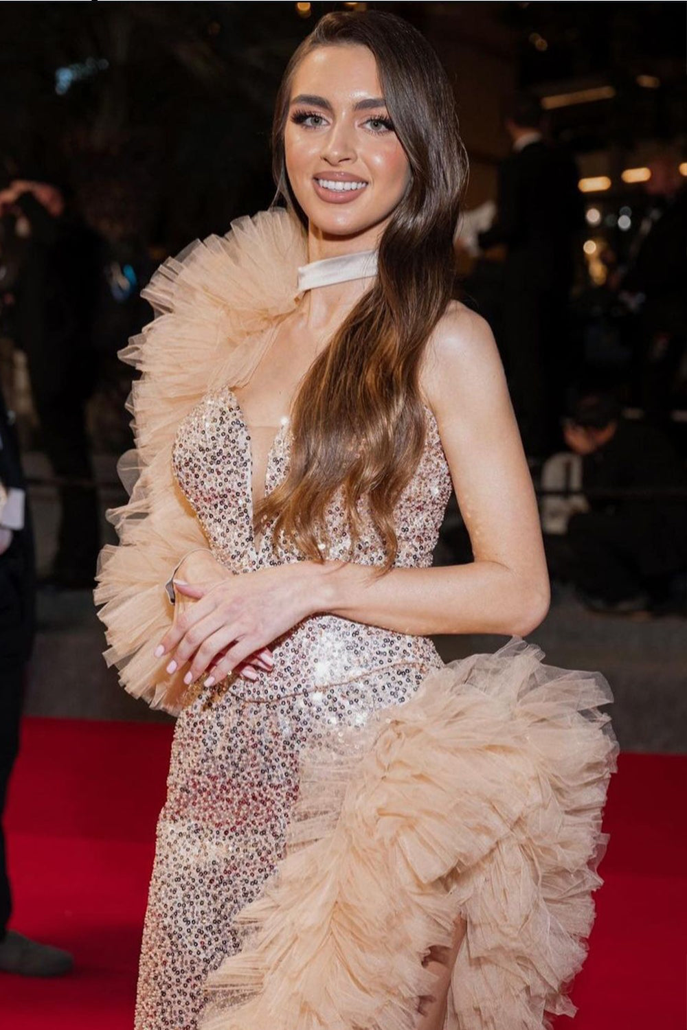This dress is simply amazing!🥰 Its design combines elegance and glamour, with the top decorated with beautiful sequins that give it a sophisticated look.The fabric is high quality and the cut fits beautifully, subtly emphasizing the figure. I highly recommend it to anyone looking for style and class in a dress!❤️