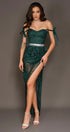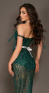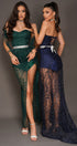 MAXI SKIRT AND CROP TOP SET NORA GLITTER LACE DARK GREEN