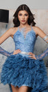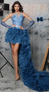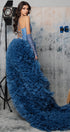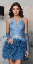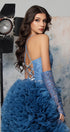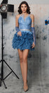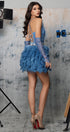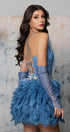 MAXI SKIRT AND CROP TOP SET ROSELYN GLITTER LACE FEATHERS LIGHT BLUE