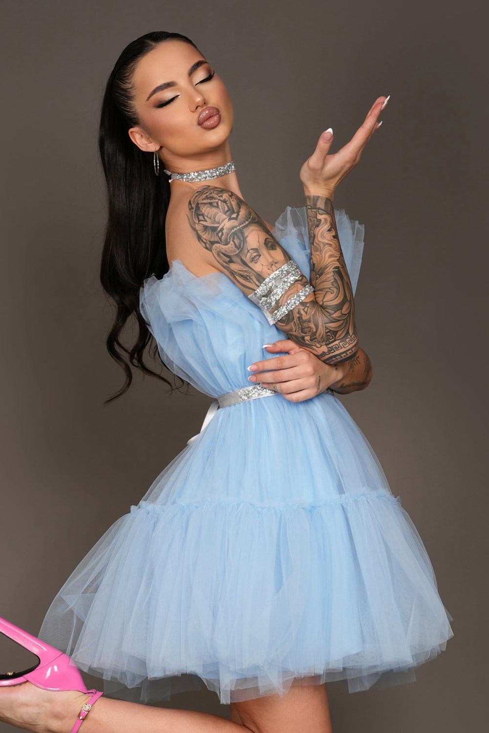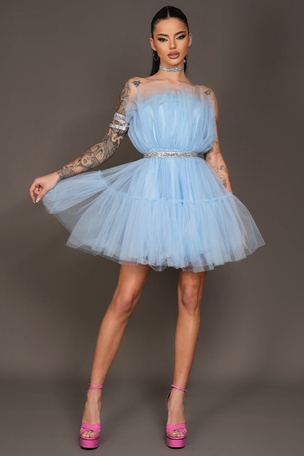 MINI DRESS BARBIE TULLE LIGHT BLUE