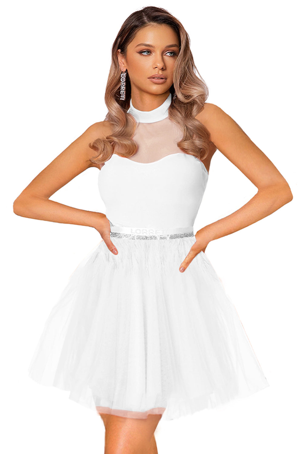 MINI DRESS NAOMI TRICOT TULLE WHITE