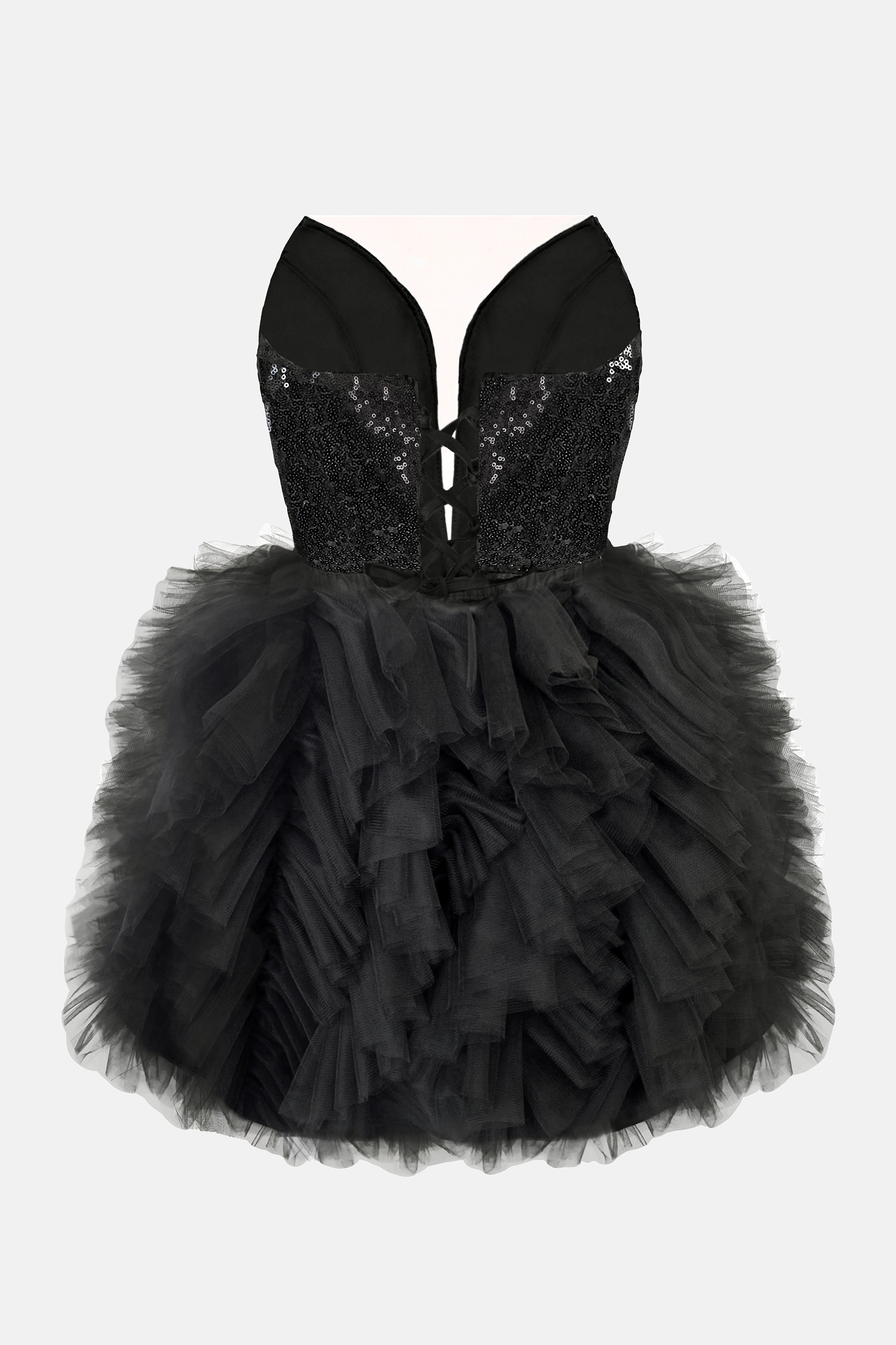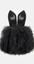 MINI SKIRT AND CROP TOP SET AMORE SEQUIN TULLE BLACK