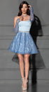 MINI SKIRT AND CROP TOP SET BEATRICE SATIN GLITTER LACE LIGHT BLUE