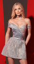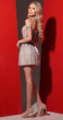 MINI SKIRT AND CROP TOP SET BILLIE GLITTER LACE SATIN SILVER AND NUDE