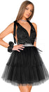 MINI SKIRT AND CROP TOP SET BRITNEY GLITTER LACE TULLE BLACK