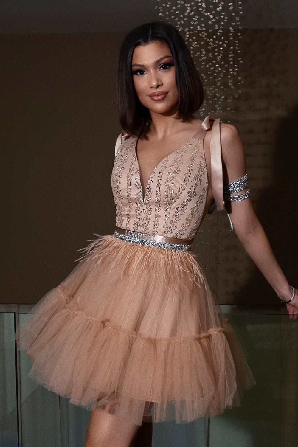 This dress is simply amazing!🥰 Its design combines elegance and glamour, with the top decorated with beautiful sequins that give it a sophisticated look.The fabric is high quality and the cut fits beautifully, subtly emphasizing the figure. I highly recommend it to anyone looking for style and class in a dress!❤️