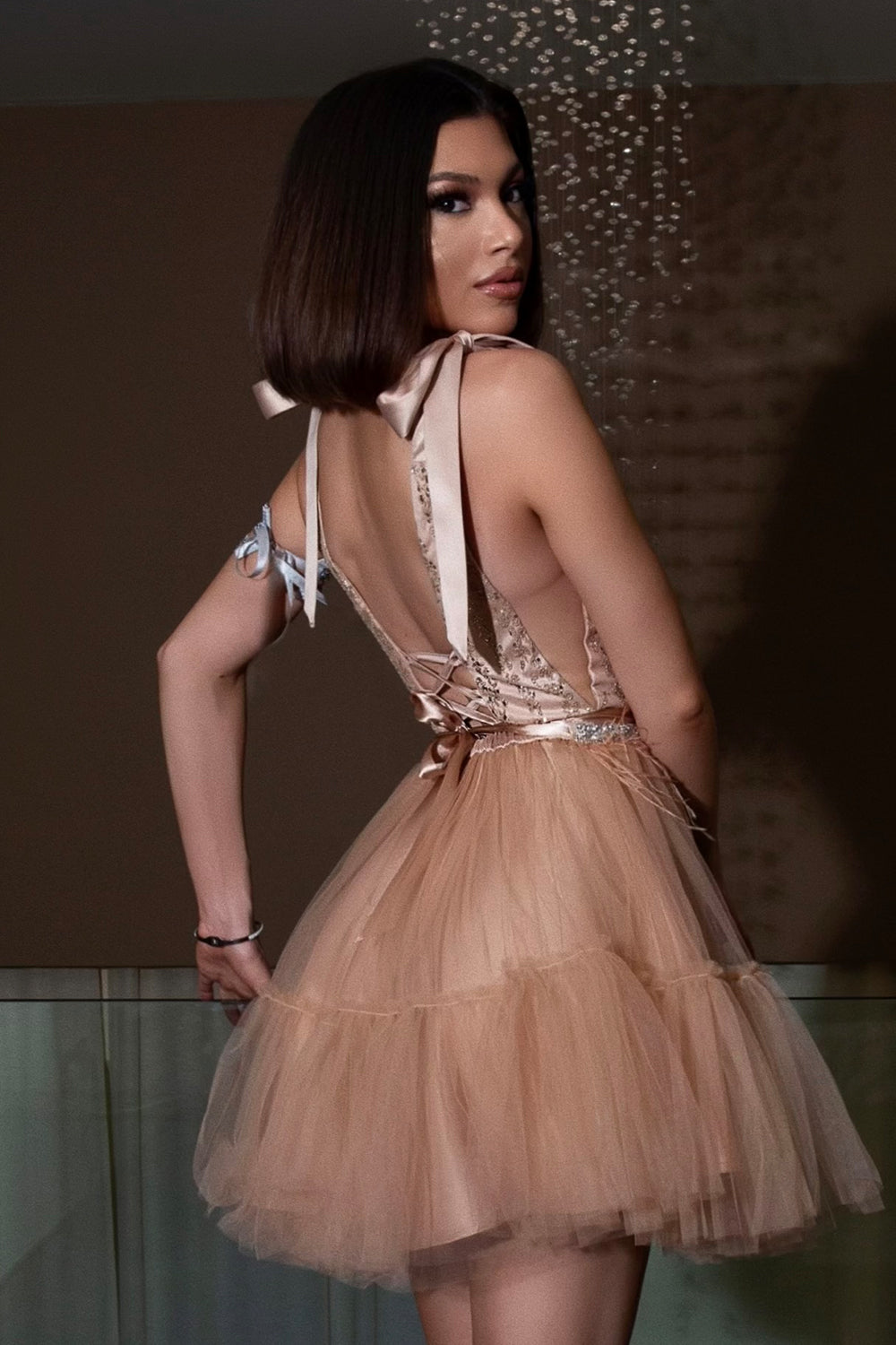 At home, we recommend delicate hand washing - soak the dress in cool water and gently clean it with mild soap or a fine detergent. After rinsing, gently squeeze the fabric without twisting it and hang the dress on a hanger to dry naturally.