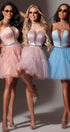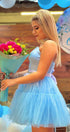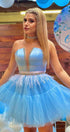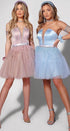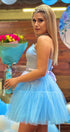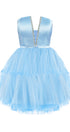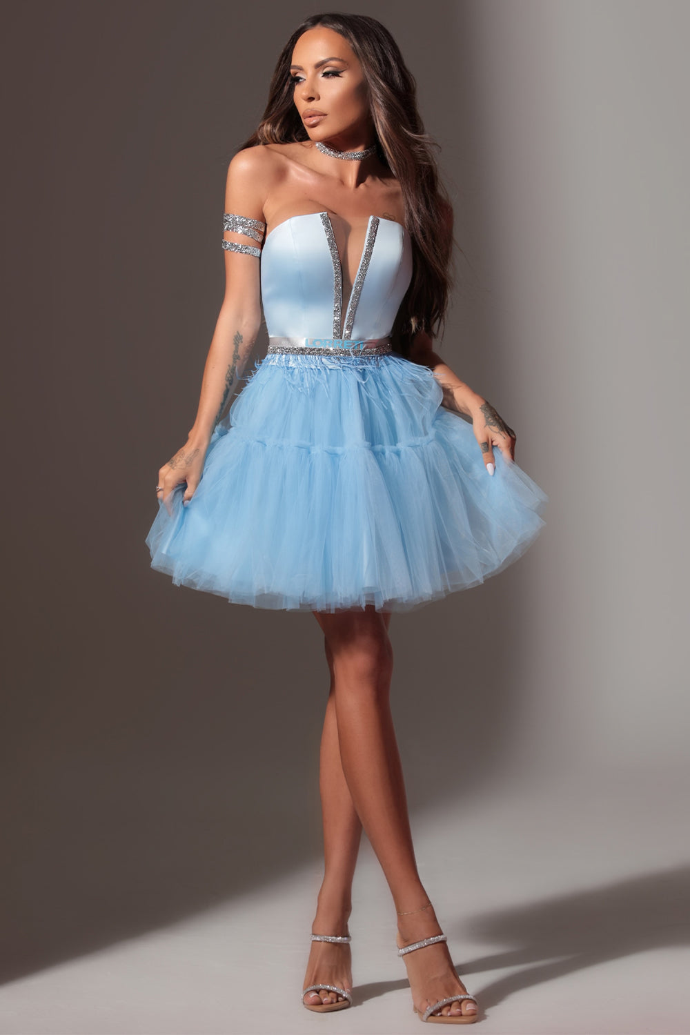 MINI SKIRT AND CROP TOP SET CECILE SATIN TULLE LIGHT BLUE