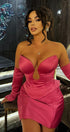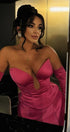 MINI SKIRT AND CROP TOP SET DANICA SATIN HOT PINK