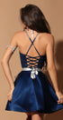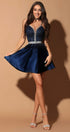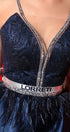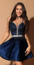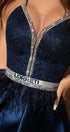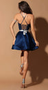 MINI SKIRT AND CROP TOP SET DIMA GLITTER LACE RHINESTONE SATIN DARK BLUE