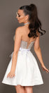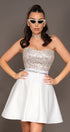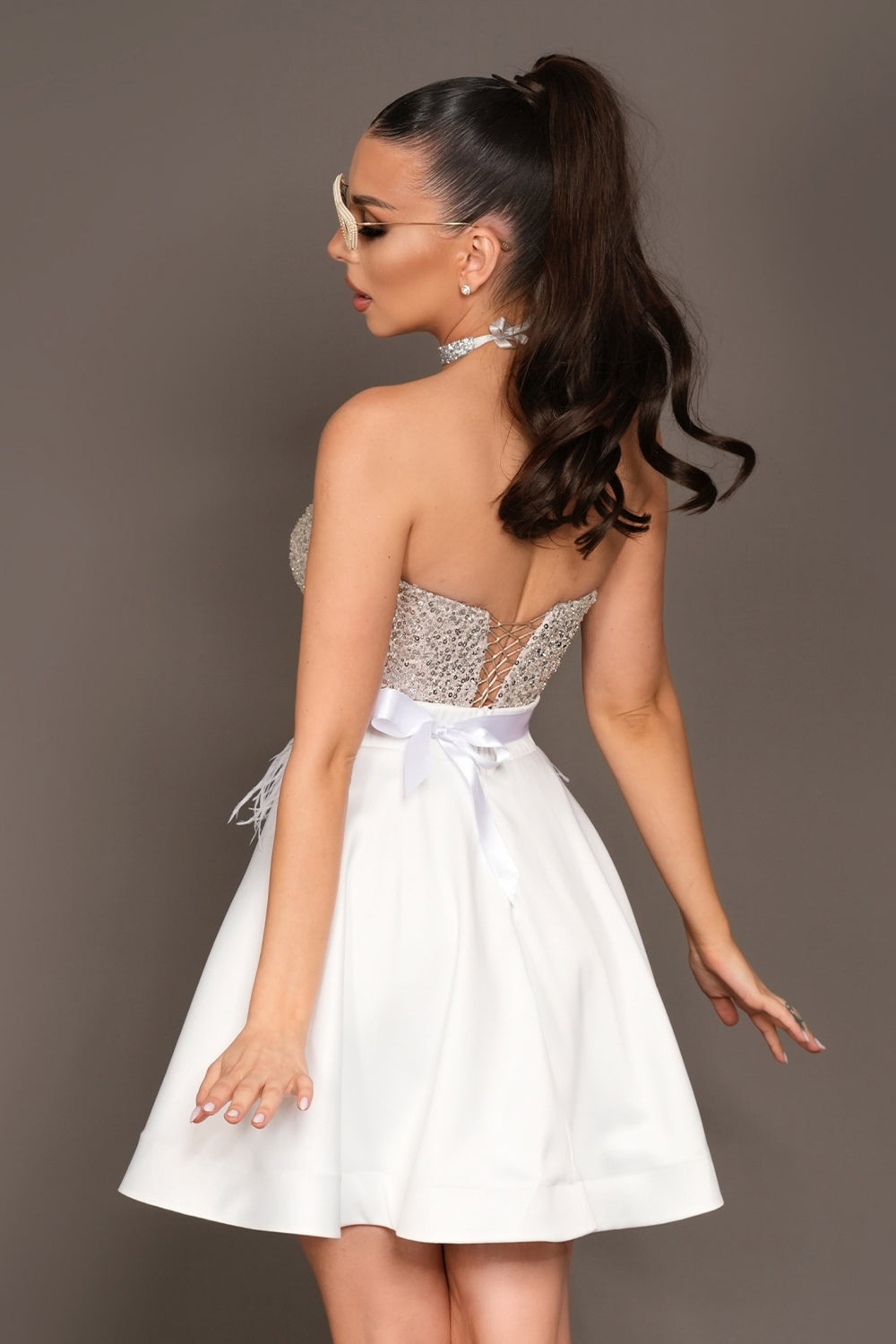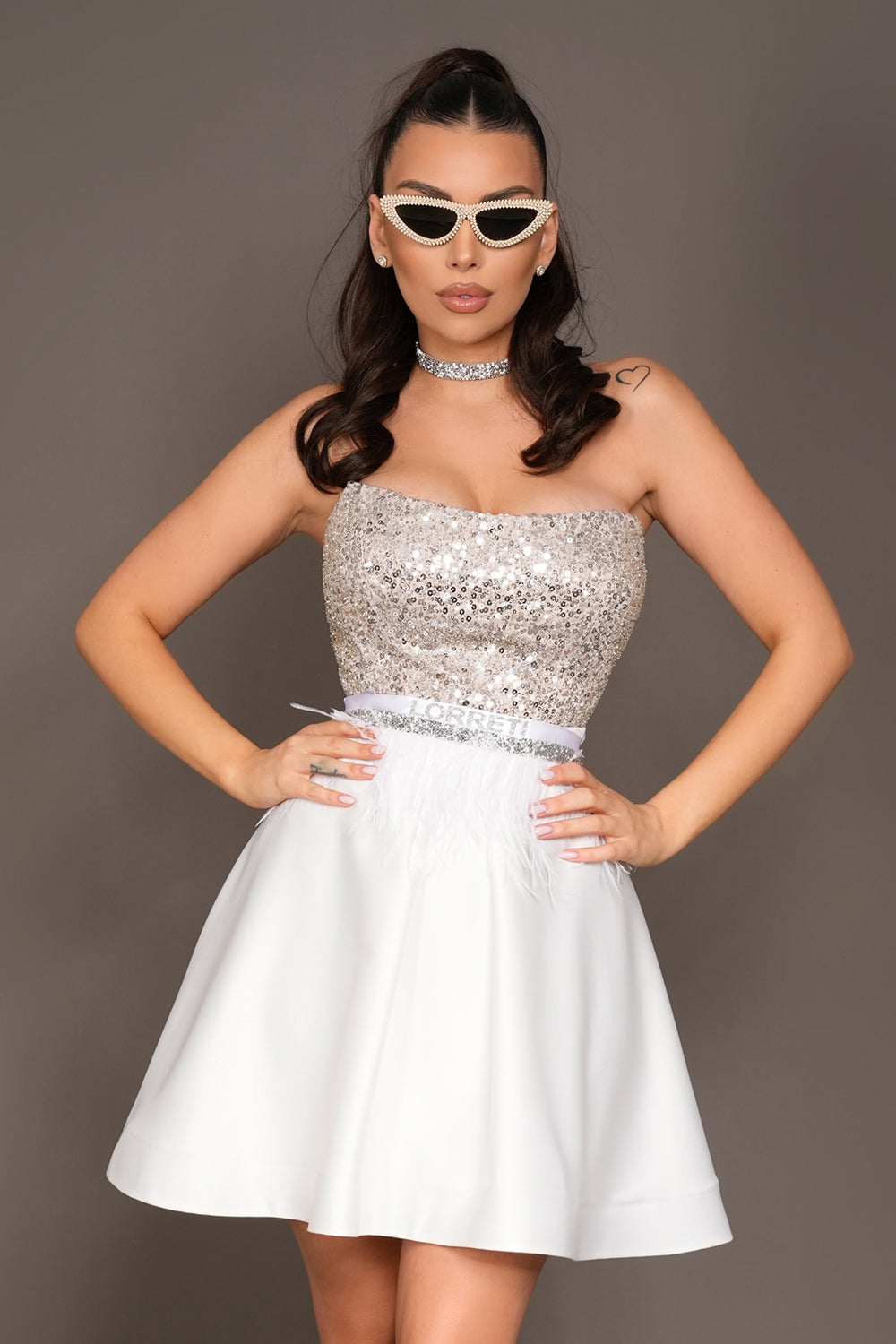 MINI SKIRT AND CROP TOP SET IRENE SEQUIN SATIN WHITE AND SILVER