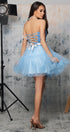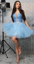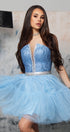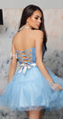 MINI SKIRT AND CROP TOP SET IZUMI GLITTER LACE RHINESTONE TULLE LIGHT BLUE