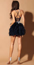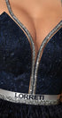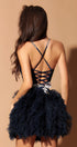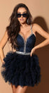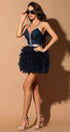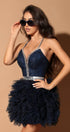MINI SKIRT AND CROP TOP SET KELLY GLITTER LACE RHINESTONE TULLE DARK BLUE