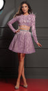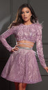 MINI SKIRT AND CROP TOP SET KIA GLITTER LACE LAVENDER