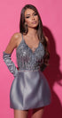 MINI SKIRT AND CROP TOP SET LENNON SEQUIN SATIN DARK GREY