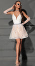 MINI SKIRT AND CROP TOP SET NOLA SEQUIN GLITTER LACE WHITE AND NUDE