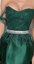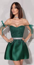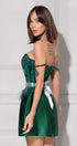 MINI SKIRT AND CROP TOP SET RENATA GLITTER LACE SATIN DARK GREEN