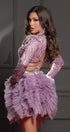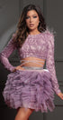 MINI SKIRT AND CROP TOP SET SENA GLITTER LACE GLITTER TULLE LAVENDER