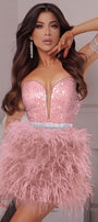MINI SKIRT AND CROP TOP SET TINKERBELL SEQUIN FEATHERS POWDER PINK